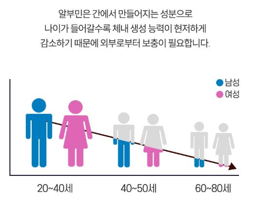 알부민은 간에서 합성되는 단백질이기 때문에, 간 기능 저하로 알부민 수치가 낮은 경우 보충이 도움이 될 수 있습니다. 실제로 간 건강 관리 목적에서 마시는 알부민의 효능을 기대하는 소비자가 많습니다.